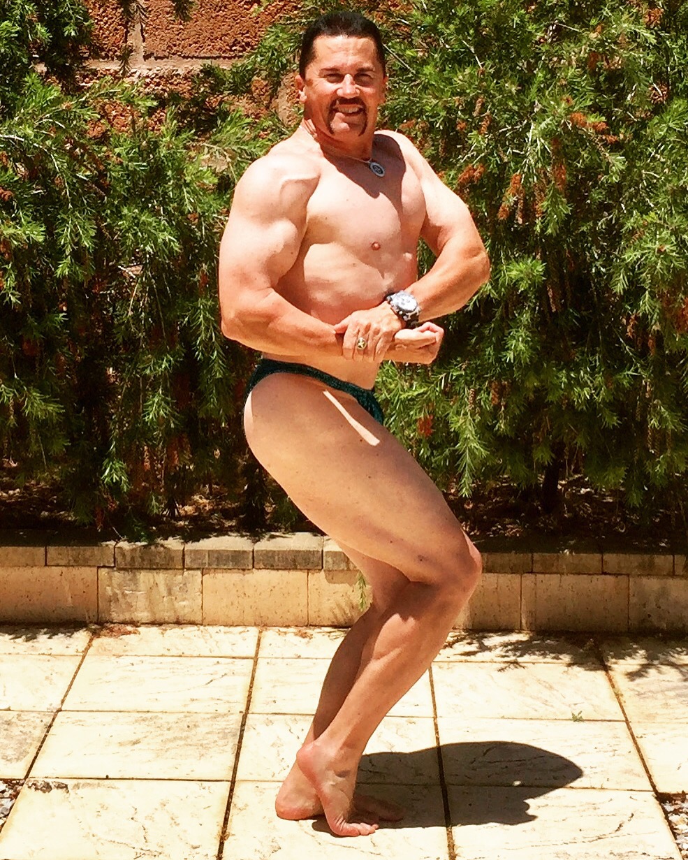 You can do all the Dexascans, weigh-ins and caliper tests you like, but as always, the bright WA sun at midday, in a pair of very brief posing trunks, is brutally honest!!! Cardio is still just 30 minutes of daily fast walking upon rising as well as 10 minute walks straight after my last meal on alternate days.